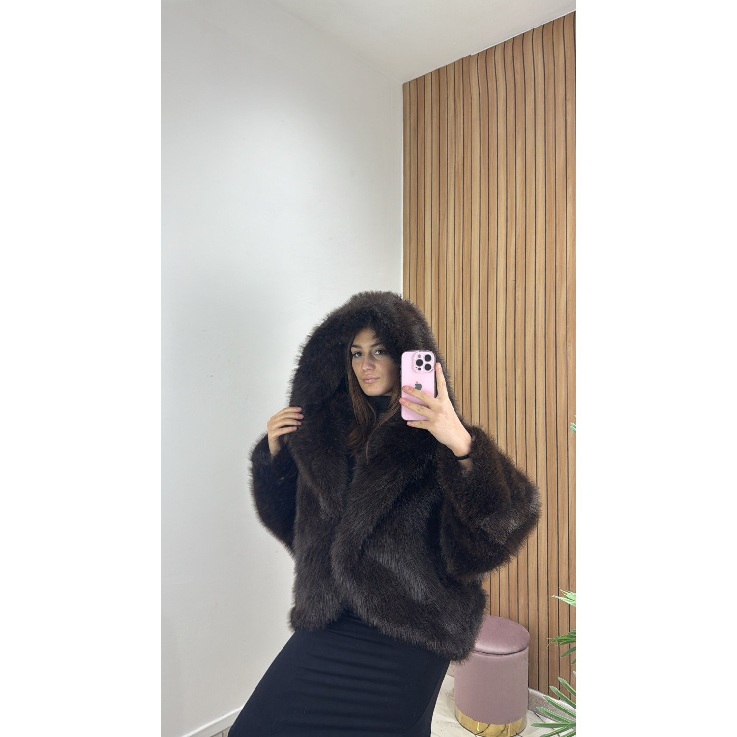 Pelliccia taglia unica, consigliabile da una S ad una L/Xl. Chiusura con gancio.