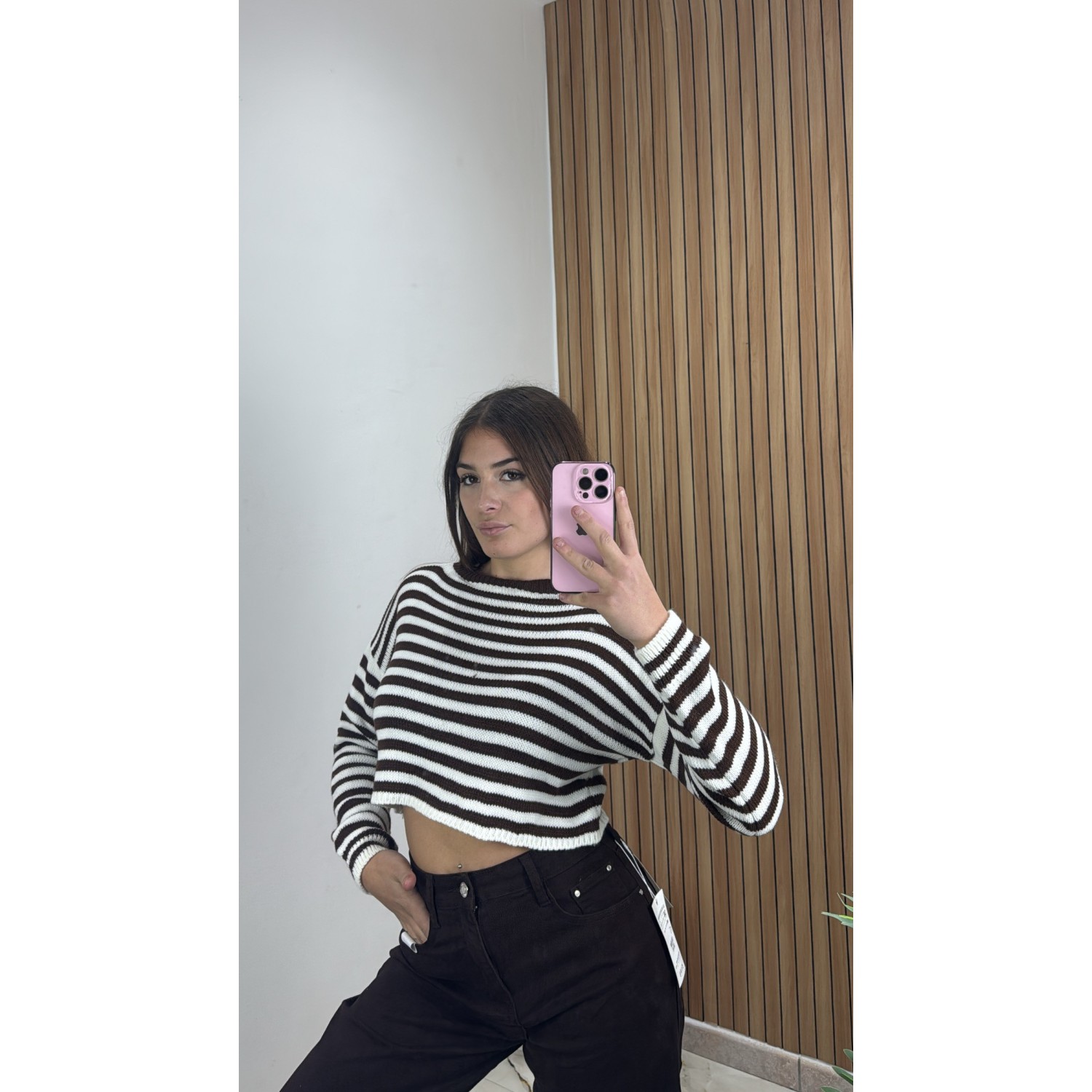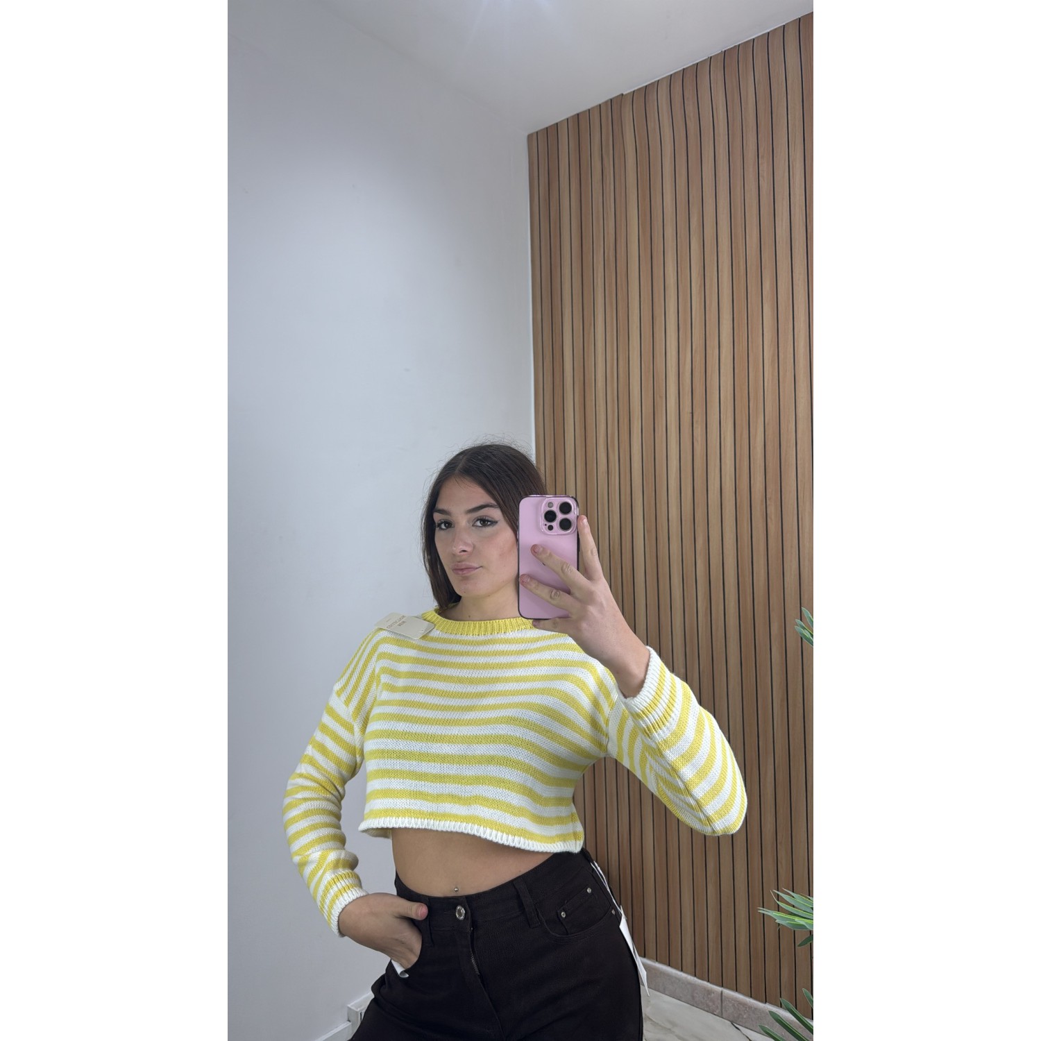 Maglioncino crop in lana, elasticizzato, taglia unica.