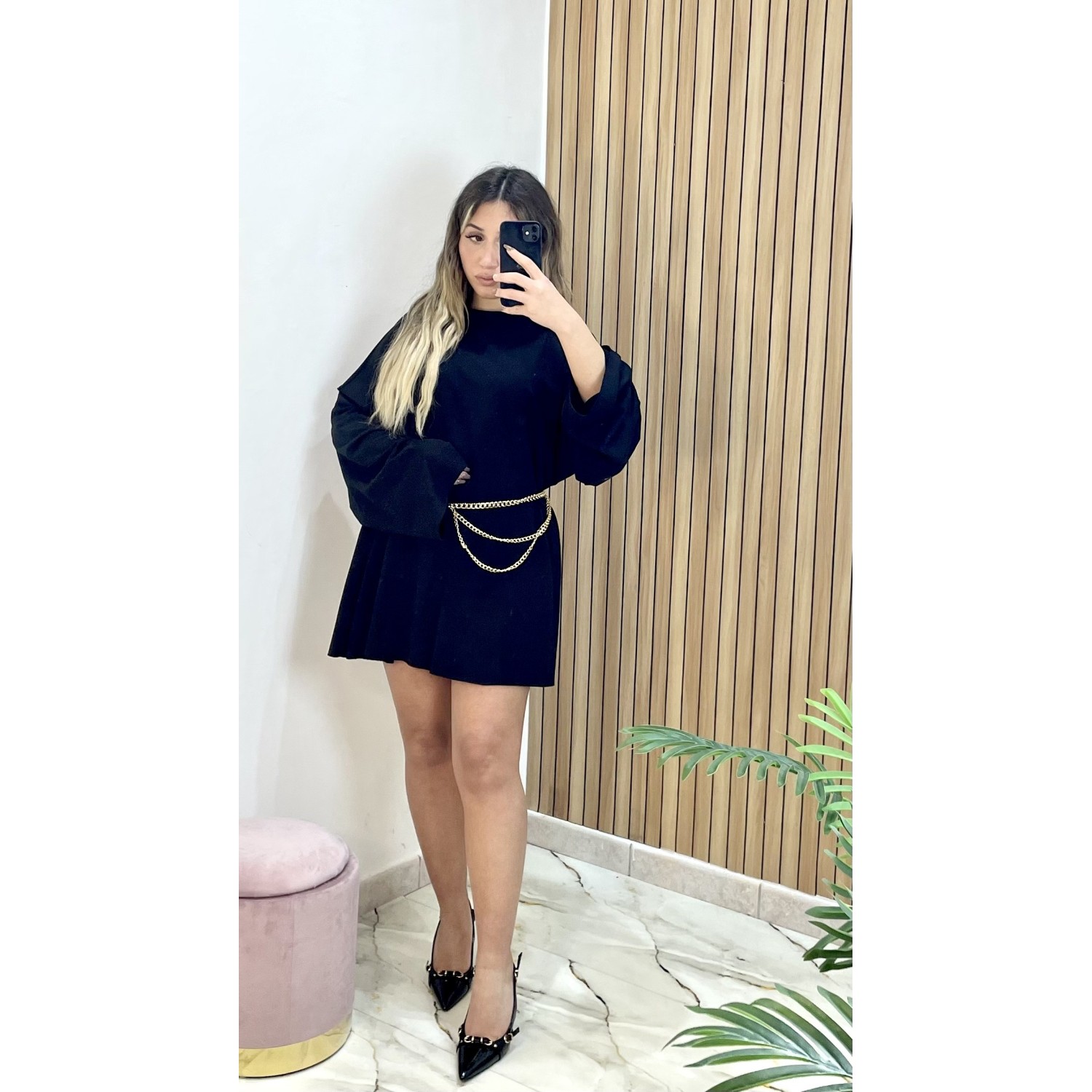 Maglia taglia unica dal modello over, vestibilità morbida e confortevole. Può essere indossata sia come maglia che come mini abito, ideale anche con cintura per definire il punto vita. Maniche ampie e linea versatile, perfetta per look casual o più ricercati.