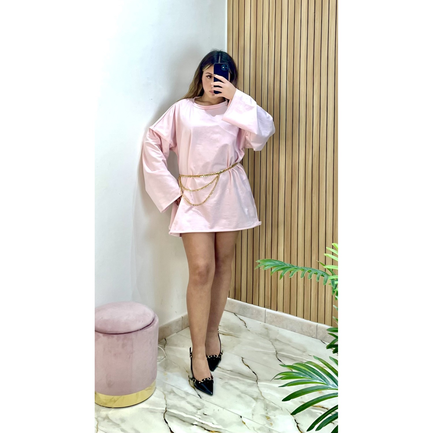 Maglia taglia unica dal modello over, vestibilità morbida e confortevole. Può essere indossata sia come maglia che come mini abito, ideale anche con cintura per definire il punto vita. Maniche ampie e linea versatile, perfetta per look casual o più ricercati.