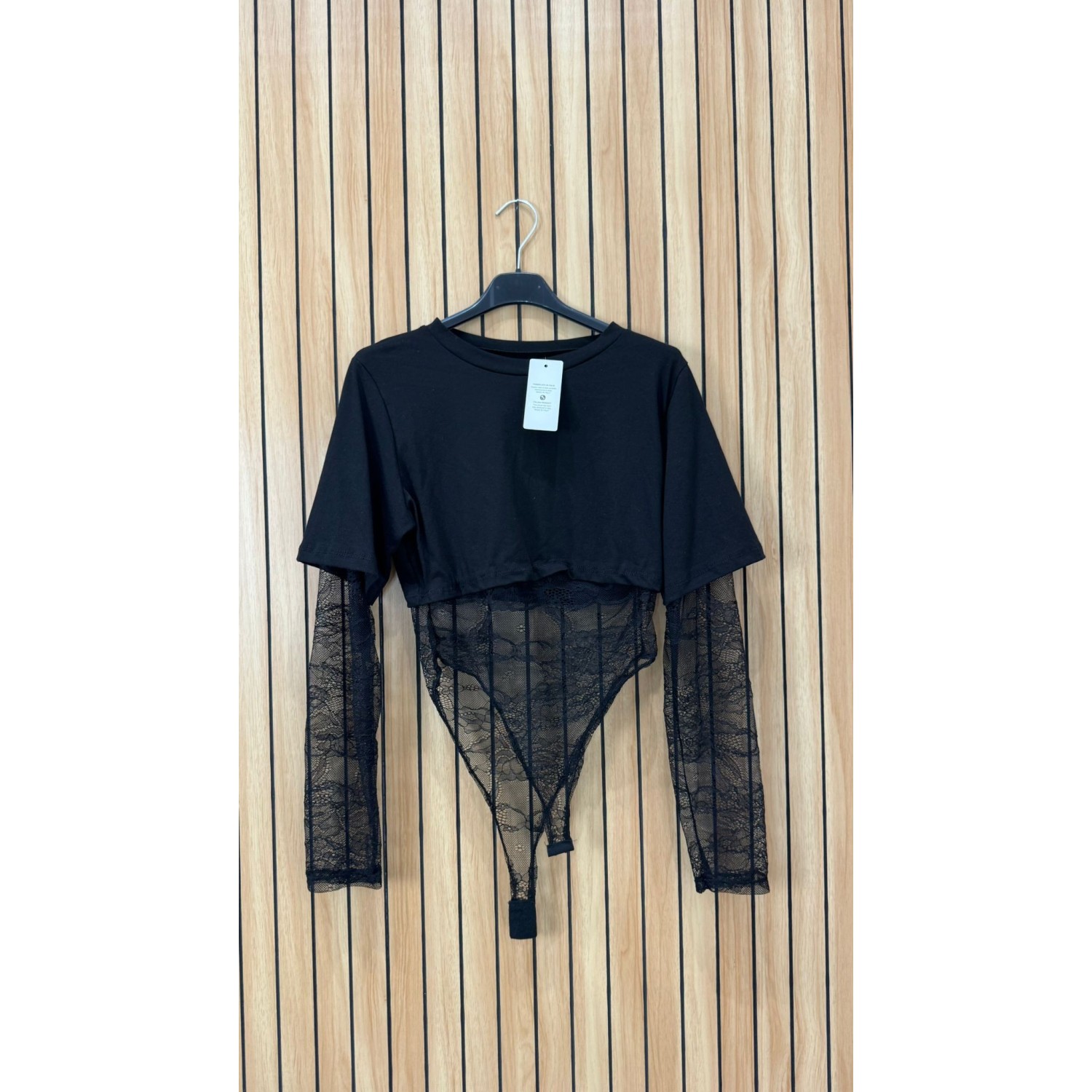 Body taglia unica, metà maglia e metà in pizzo, consigliabile da una XS ad una M