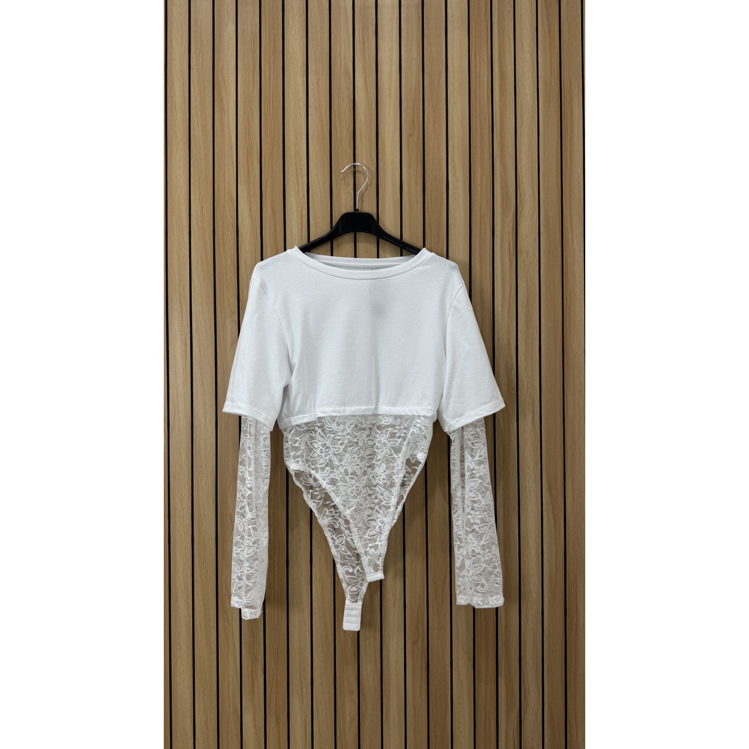 Body taglia unica, metà maglia e metà in pizzo, consigliabile da una XS ad una M
